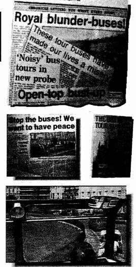 Battling with the Talking Buses From Newsletter No. 13 Winter 1989 Society member and author Sheila McCullagh began the protest with a letter to the Bath Evening Chronicle. HTV spotlighted residents' anger on its news program. More letters of protest, appeared in the Evening: Chronicle followed by TV, radio and national paper reports. The latest coverage came in the Bristol Evening Post in November. But the brochures still tempt the tourists; loudspeakers still blare, and the guides shout their way around The Crescent. And Badgerline's manager told the Chronicle: "We are allowed to operate this service by virtue of our service licence and we shall continue until we are stopped".